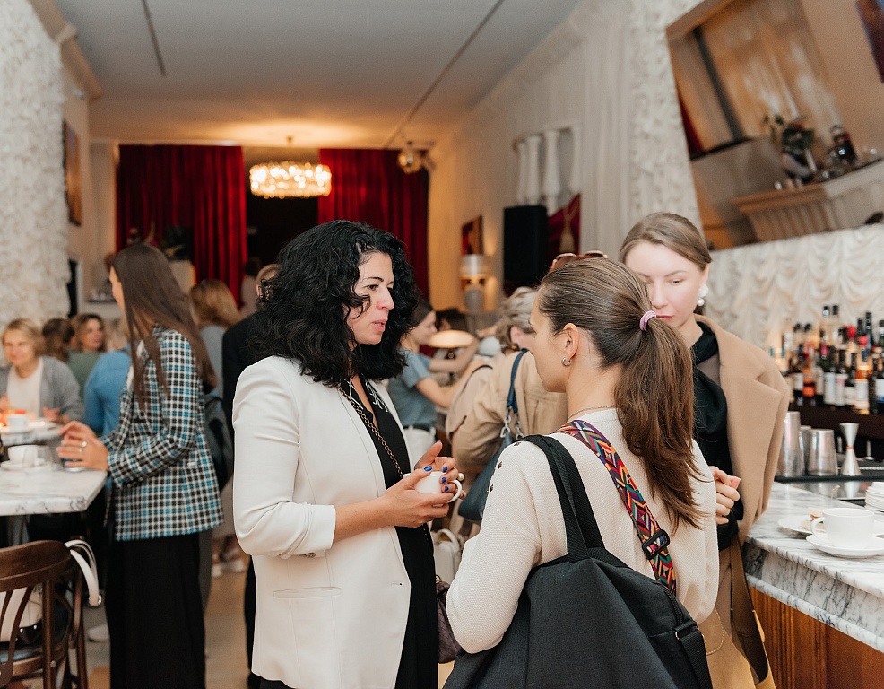 Об этом мы и пообщались с Юлией Погребинской солнечным воскресным утром. Наши разговоры начались за вкусным кофе-брейком, любезно накрытом командой Marco Polo by Moss Hospitality, а затем мы перешли в светлый, драпированный белыми тканями, зал, где продолжили «задушевное обучение» в формате мастер-класса.
