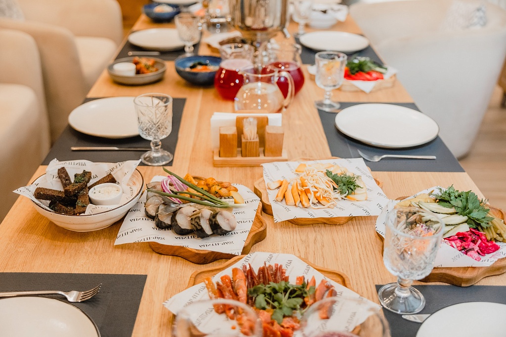 Не бывает сказки без широкой трапезы, поэтому к гастрономии в «Жар-Птице» подходят с особым вниманием. Меню разработал бренд-шеф Alba Group Сергей Отдельнов, который в качестве вдохновения использовал исконно русские мотивы и характерные для банной тематики блюда и закуски. Результат удивляет масштабом и разнообразием: от казы и раков до изысканных авторских яств. Отметим, что завтраки на Нижней Масловке подаются с 9 до 12.