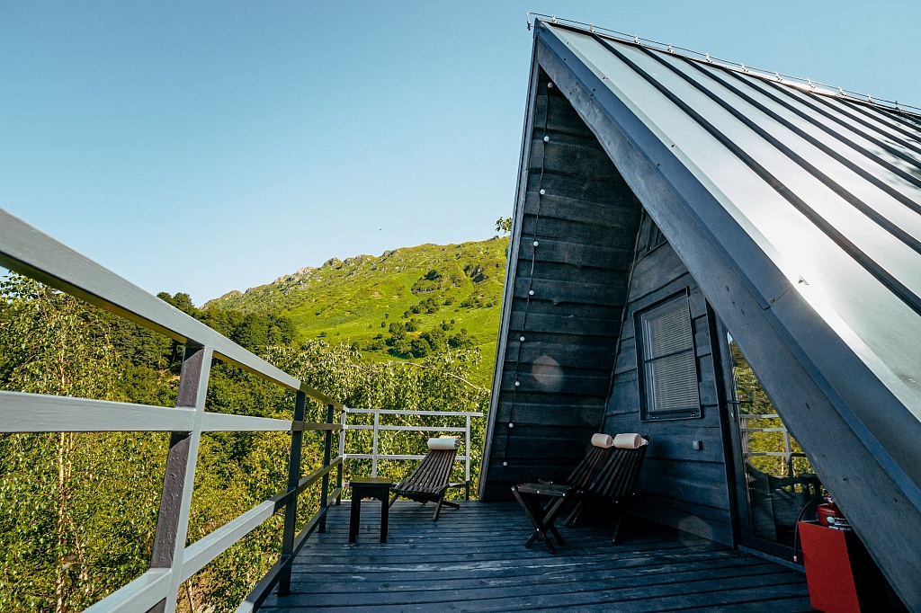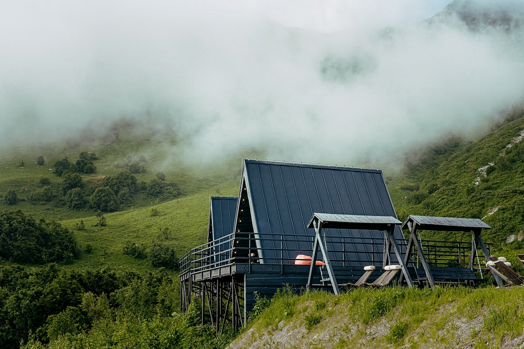 Максимальная вместимость кемпинга 12 домиков-лоджей (А-фреймы, каждый до 6 человек) + 20 настилов в палаточном лагере. Здесь плохо ловит сеть, но можно организовать хороший вай-фай, если он нужен для групп. Вокруг только горы и реликтовый лес. Потрясающие закаты выше облаков. Костровая зона для тёплых вечеров.