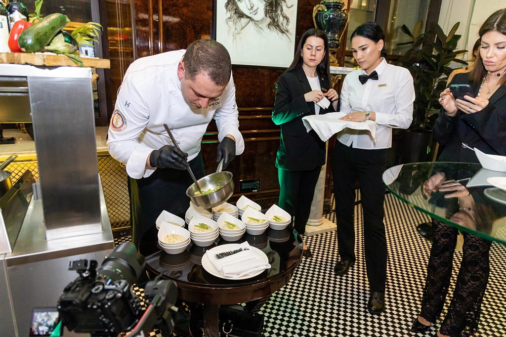 Это было красивое закрытое мероприятие на 50 персон. Изысканное, как и сам отель St. Regis. На фуршетных столах были представлены средиземноморские закуски, на открытой кухне шеф-повар готовил вкуснейшее ризотто со спаржей, а программа, подготовленная нашими партнерами Международным культурным центром им. С. Дягилева перенесла нас в прекрасную Италию. В концертной части приняли участие солисты Мариинского театра, Геликон-оперы и Цирка дю Солей.