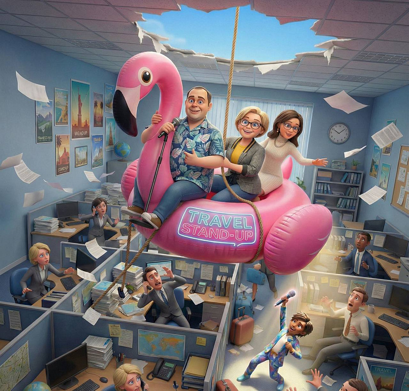 «В туризме мы каждый день проживаем сюжеты, достойные голливудских блокбастеров. Но часто держим эти эмоции в себе. Мы решили создать пространство, где любой рабочий форс-мажор становится поводом для качественного юмора, а смех — терапией. Наш символ — розовый фламинго — это метафора спасательного круга, который мы бросаем коллегам, чтобы они могли выдохнуть и перезагрузиться», — комментирует автор идеи, основатель бренда Travel Stand-Up и давний партнер MICE&more Андрей Прищепов (Mr.Qatar).