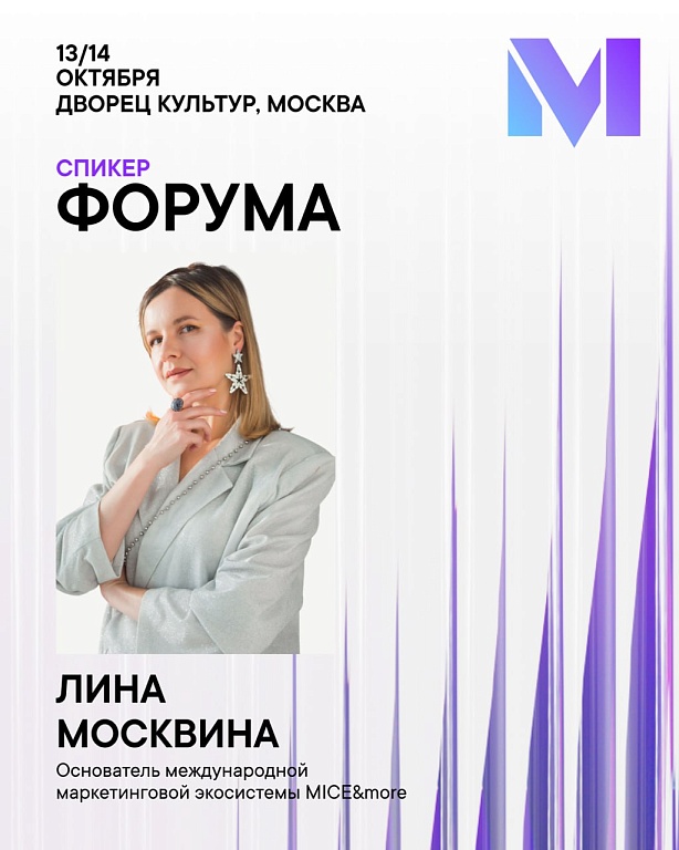 И, конечно, Лина Москвина — основатель международной маркетинговой экосистемы MICE&more. Специалист в сфере делового туризма с 25-летним опытом.