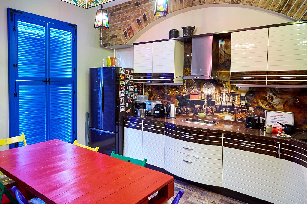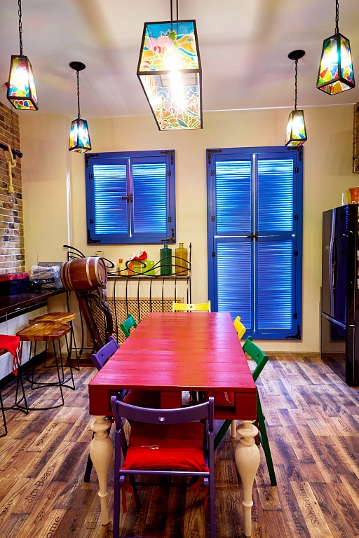 Любимое всеми место — кухня; она похожа сразу и на корабельную кают-компанию, и на каменную террасу в Сицилии.