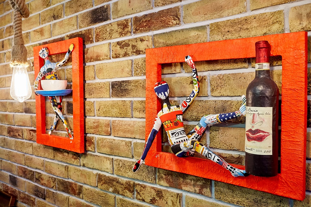 Также много оформительских элементов, связанных с путешествиями — это одно из ведущих направлений нашего бизнеса, например, зеркала в виде лондонских телефонных будок или декоративные решетчатые ставни.