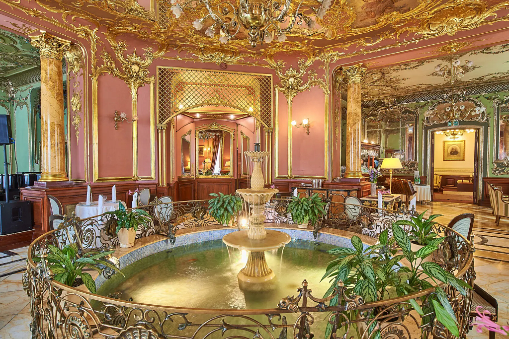 Открытый еще в 1913 году ресторан продолжает держать "марку" роскоши и элегантности. Кокетливое рококо в интерьере сочетается с классической русской и европейской кухней.