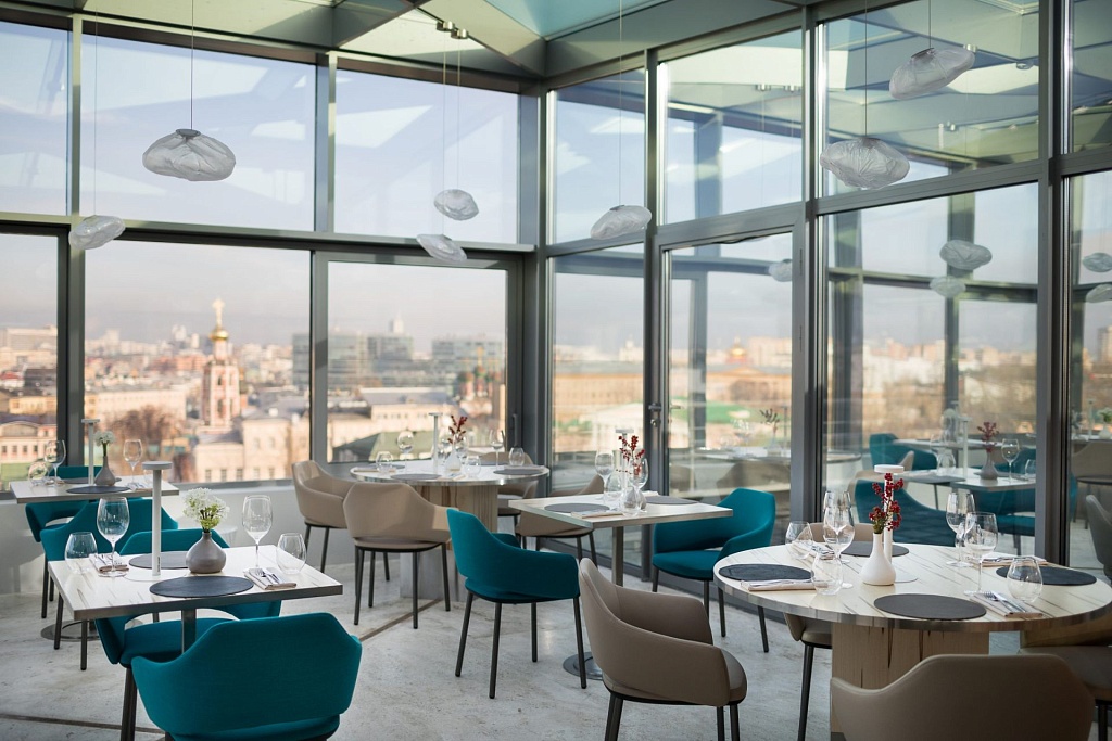 Удобное расположение, отдельный лифт и вид на сердце столицы с высоты птичьего полета — вот лишь небольшой список причин выбрать Карлсон («на крыше») для делового обеда.