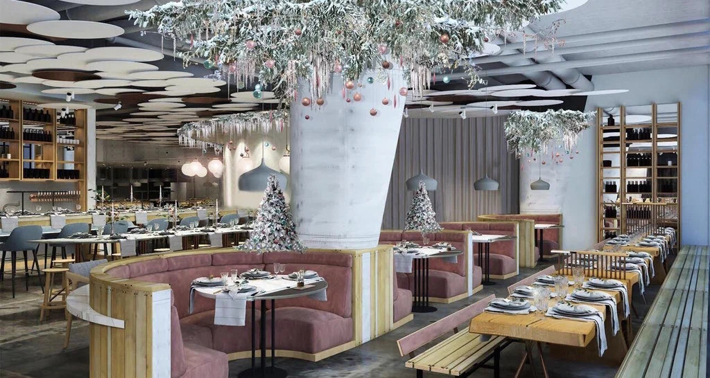 Панорамные окна, терраса и стильный дизайн сочетаются с красивой подачей блюд, даже когда речь идет о тематическом бизнес-ланче.