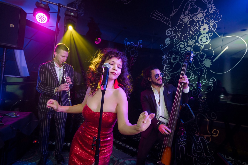 Танцевали в этот вечер много, причем не только под DJ, но и под великолепные стилизованные сеты уникальных исполнителей жанра Electro Swing - винтажный семпл-коктейль эпохи 20х и современных электронных звучаний. Эти блестящие артисты - настоящее открытие вечеринки. Мы точно знаем, что некоторые гости оставались в зале до самого последнего аккорда, потому что не могли пропустить ни одну композицию.