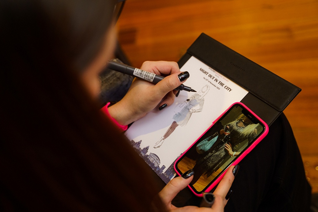 На 33-ем этаже гостям вновь предлагали охлаждённое просекко и желающих еще раз фотографировали, но … для художественных скетчей на брендированной открытке с изображением гостя в стиле модного глянца. Еще один сувенир в копилку впечатлений!