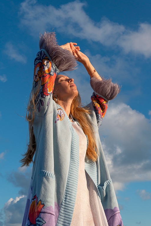 Например, коллекция кардиганов «Saison Russe» посвящена величию русского балета и постановкам известных балетмейстеров, а кардиган «Хозяйка Медной горы» вдохновлен Уралом, героиней сказов Бажова - Хозяйкой Медной горы в ее шелковом малахитовом одеянии.