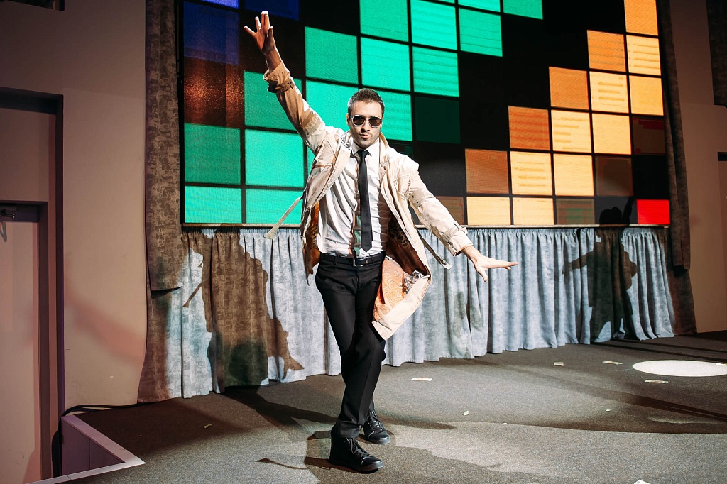 Как известно, театр начинается с вешалки. А Казино от Центра Дягилева — с Ведущего, обладателя поистине аристократических манер. И это неудивительно, ведь его дом — культурная столица России. Это актер одного из драматических театров Санкт-Петербурга — Евгений Дубовской. Как правило, для такого вечера Евгений надевает прекрасные усы, добавляющие ему «прошловекового» шарма.