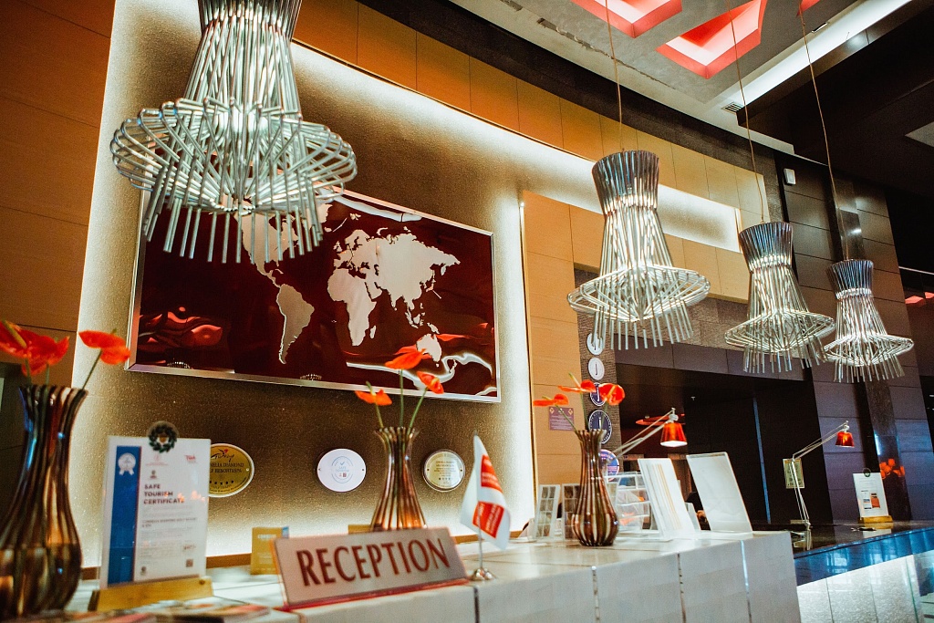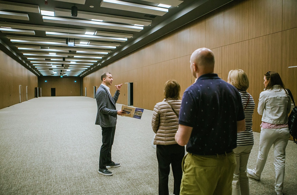 Однако с точки зрения MICE самые яркие впечатления у нас сложились после посещения нового конгрессно-выставочного центра NEST, который расположен в центре Белека и принадлежит владельцам группы Cornelia Hotels.Golf.Spa. Это невероятно технологичное пространство поражает! Кажется, что здесь все управляется с пульта и даже с вашего мобильного телефона.