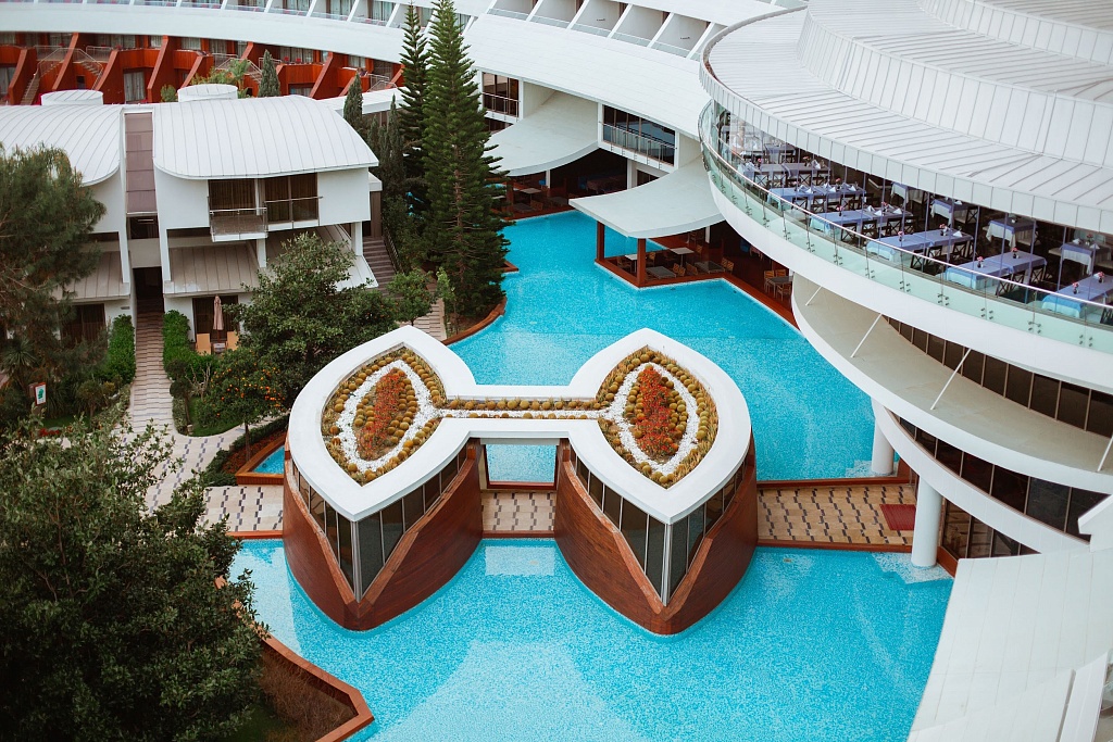 Отель Cornelia Diamond Golf Resort & Spa расположен на живописных пляжах Белека и предлагает для отдыха восемь бассейнов с великолепным аквапарком. Отель действует по системе Diamond All Inclusive. Гости проживают в просторных номерах нескольких категорий площадью от 42 кв. м: классический, представительский, семейный с выходом в сад или с выходом в бассейн, а также здесь есть разнообразные люксы, в том числе с террасами и в разной цветовой гамме.