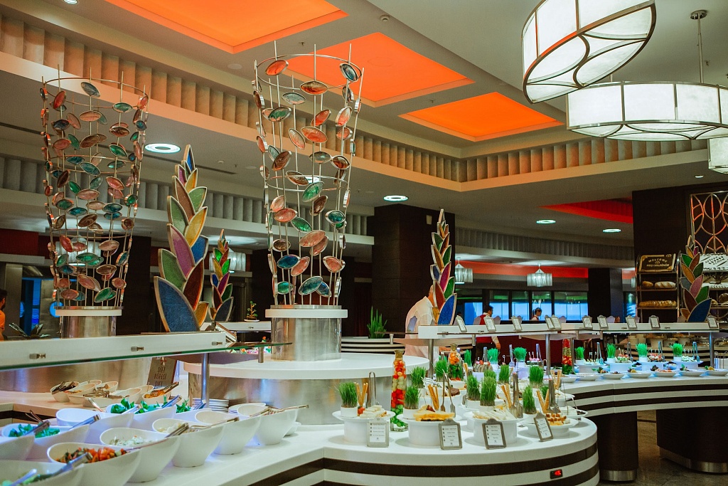 В этом пятизвездочном курортном гольф-отеле работает пять а-ля карт ресторанов и одиннадцать баров. В одном из них – ресторане средиземноморской кухни SAPORE – состоялся наш приветственный ужин с участием команды отеля. Также в отеле представлены тайская и латиноамериканская кухни, дары моря мы порекомендуем отведать в рыбном ресторане FISH&LOVE, а для VIP-ужина на небольшую компанию до 10 человек идеально подойдет ресторан японской кухни TEPPANYAKI c уникальным fireshow от шеф повара.