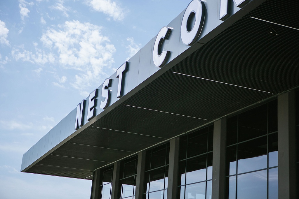 Площадь помещений двухэтажного комплекса NEST составляет 15 000 кв. м, а площадь для проведения мероприятий под открытым небом – 5 000 кв. м. На верхнем этаже находится главный зал с высотой потолков 10 метров и площадью 6 000 кв. м, который может быть разделен на пять зон, а также фойе площадью 1 500 кв м. Находящиеся на нижнем этаже 24 зала для workshop с высотой потолков пять метров, конференц-зал общей площадью 5 000 кв. метров и фойе площадью 1 700 кв. метров отвечают всем потребностям MICE-клиентов. Только представьте: NEST может комфортно разместить до 10 000 человек. Грандиозный размах!