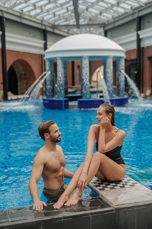 Стеклянный купол помещения позволяет наслаждаться солнечными лучами в любое время года, разнообразие водных процедур помогает комплексно восстановить силы и зарядиться энергией, а в специальном меню спа-бара можно найти вкусные и полезные блюда.