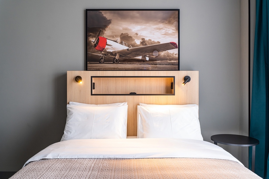 Для бронирования в DOMINA «Пулково Отель и Апартаменты» представлены четыре категории номеров: стандарт, улучшенный, семейный и номер с подъемной кроватью. Площади номеров от 24 до 37 кв. метров. Кровати – одна большая 160*200 или две полуторные 90*200 (только в Стандарт ТВИН). Стандарт с подъемной кроватью трансформируется из полноценного спального места в диван. Во всех номерах мини-кухня с варочной поверхностью, мини-холодильником и свч. В семейных номерах балкон с панорамным видом на город. Есть рабочая зона, где можно поработать или поужинать всей семьей.