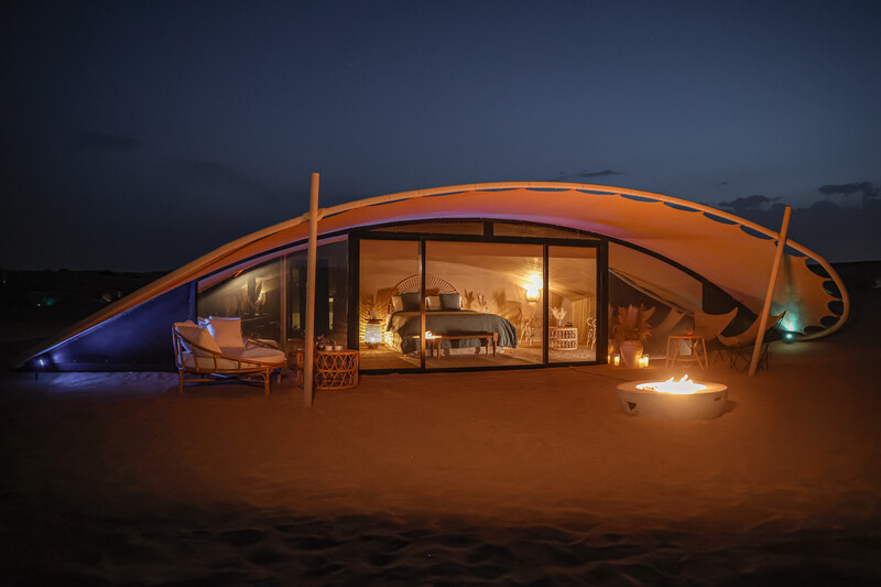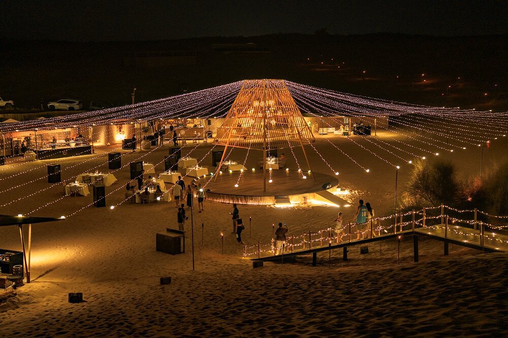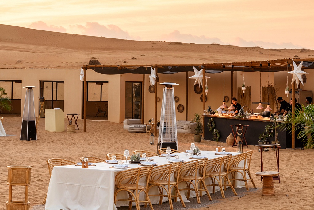 По желанию предварить ужин можно сафари по дюнам в роскошных джипах 4 WD (организуют водители Sonara Camp). Также в программе: верблюды и соколы, стрельба из лука и сэндбординг, и даже интерактивное шоу ястребов. После ужина вы можете не торопиться возвращаться в город, а провести ночь в глэмпинге The Nest от Sonara Camp (размещение до 28 человек), чтобы позавтракать среди барханов.