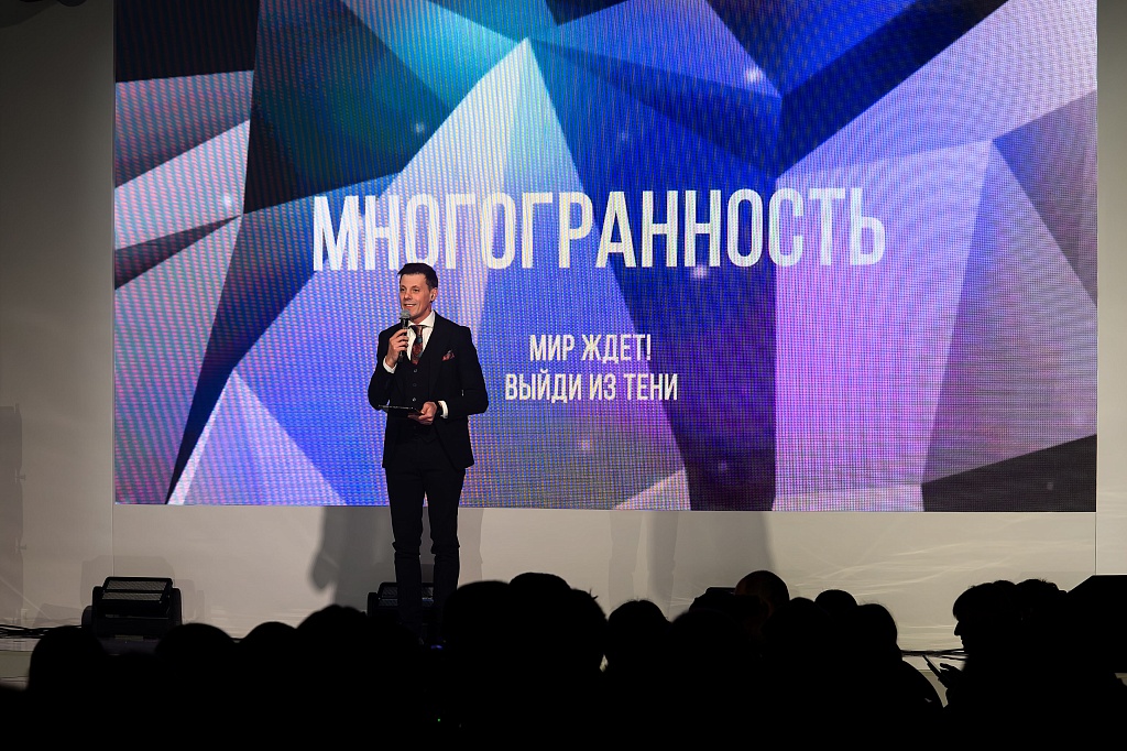 «Выйти из тени» - так звучала центральная мысль форума, вокруг которой строилась как архитектура деловой программы, так и режиссура мероприятия. В качестве сценического решения был использован длинный подиум, который разделил пространство на две части. Нестандартный формат сцены, активное использование света, множество экранов по периметру зала, неформальные представления спикеров с их личными историями и занимательной инфографикой — все это позволило сделать выступления более динамичными, эмоциональными, игровыми и отличающимися от привычных деловых конференций (что отмечается в большинстве отзывов, которые уже получили организаторы).
