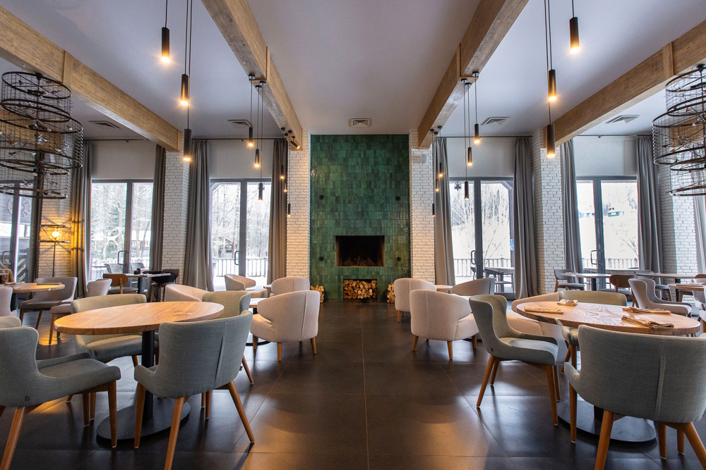 Территория отеля, включающая разноплановые ландшафты, служит идеальным пространством для вдохновения и создания индивидуального оформления: светлая и просторная веранда ресторана, с которой открываются виды на реку Осётр, летний шатер. Отдельно отметим территорию очага – колоритное место, где можно собраться вечером у костра, понаблюдать как шеф-повар готовит выбранные вами блюда или приготовить их самим, согреться глинтвейном, пожарить маршмеллоу или спеть с друзьями под гитару.