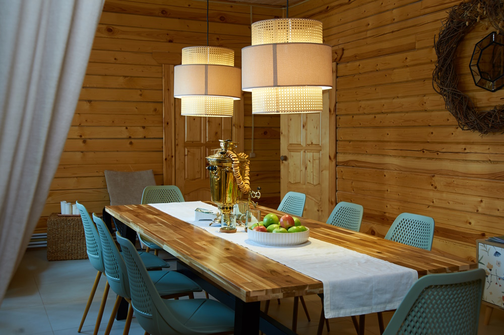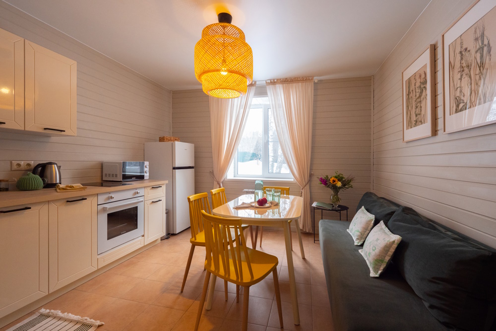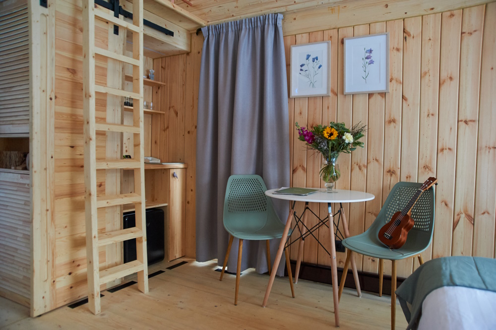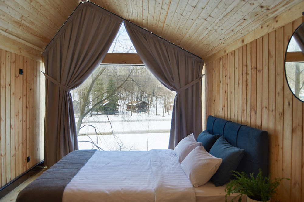 В отеле представлены различные форматы размещения, начиная от уединенных экомодулей до просторных деревянных срубов и коттеджей, оборудованных собственными саунами. В отделке использованы натуральные материалы и необработанные поверхности, а в светлых и современных интерьерах вы найдете уникальные детали, созданные тульскими мастерицами. Они подчеркивают местный колорит и локальную аутентичность места.