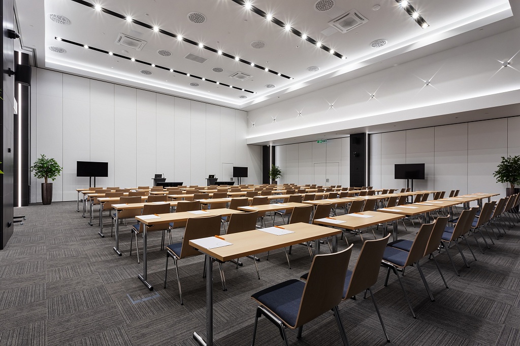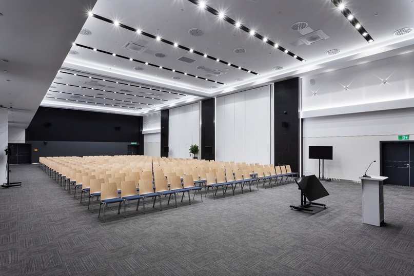 Трансформируемое пространство конференц-центра предполагает более 10 сценариев его зонирования, что позволяет успешно проводить мероприятия различных форматов: от тренингов и переговоров до масштабных конференций и корпоративных праздников с установкой сцены.