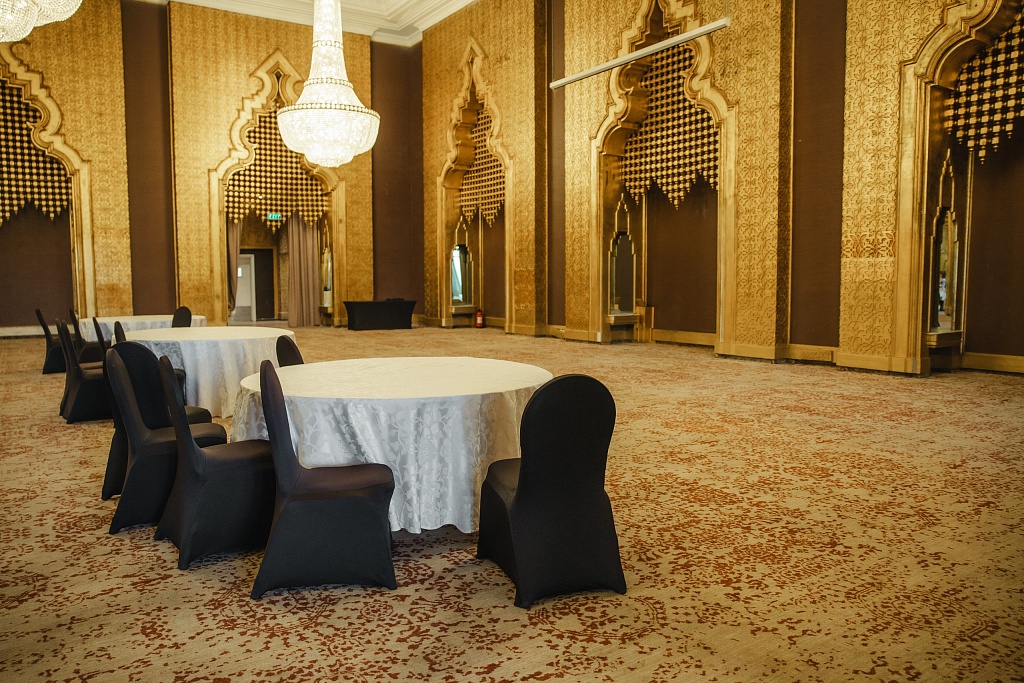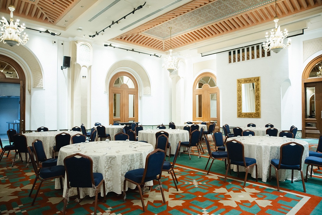 Al Hambra Ballroom — богато декорированный зал с арабесками и высоким потолком, подходит для мероприятий до 450 гостей.