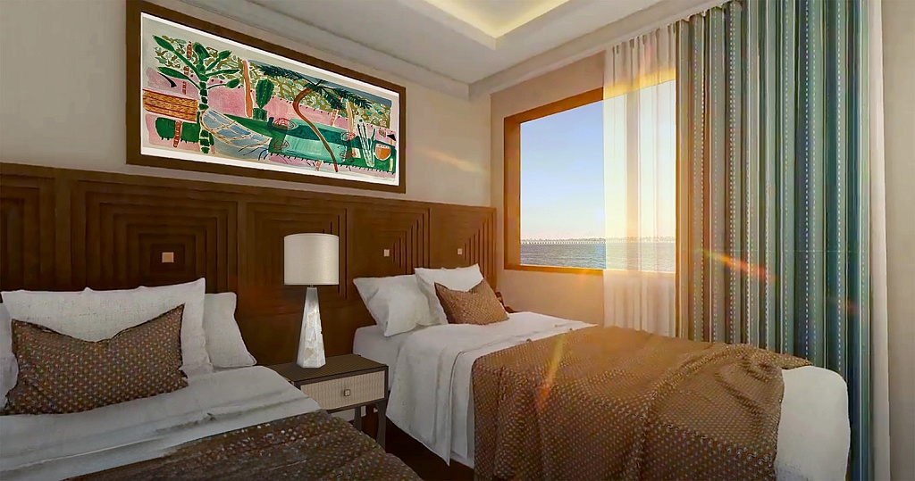 Каждая каюта люкс — это шедевр дизайна, украшенный потрясающей мебелью, шикарными удобствами и панорамным видом на Нил. Все удобства рассчитаны на гостей с самыми взыскательными требованиями. Во время круиза можно провести время в джакузи на солнечной террасе, наблюдая живописные пейзажи вокруг. Можно погреться в лучах сияющего солнца и побаловать себя в роскошном баре-лаунже.
