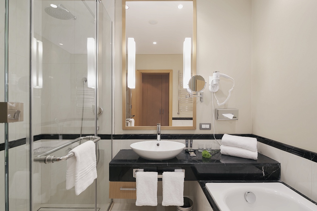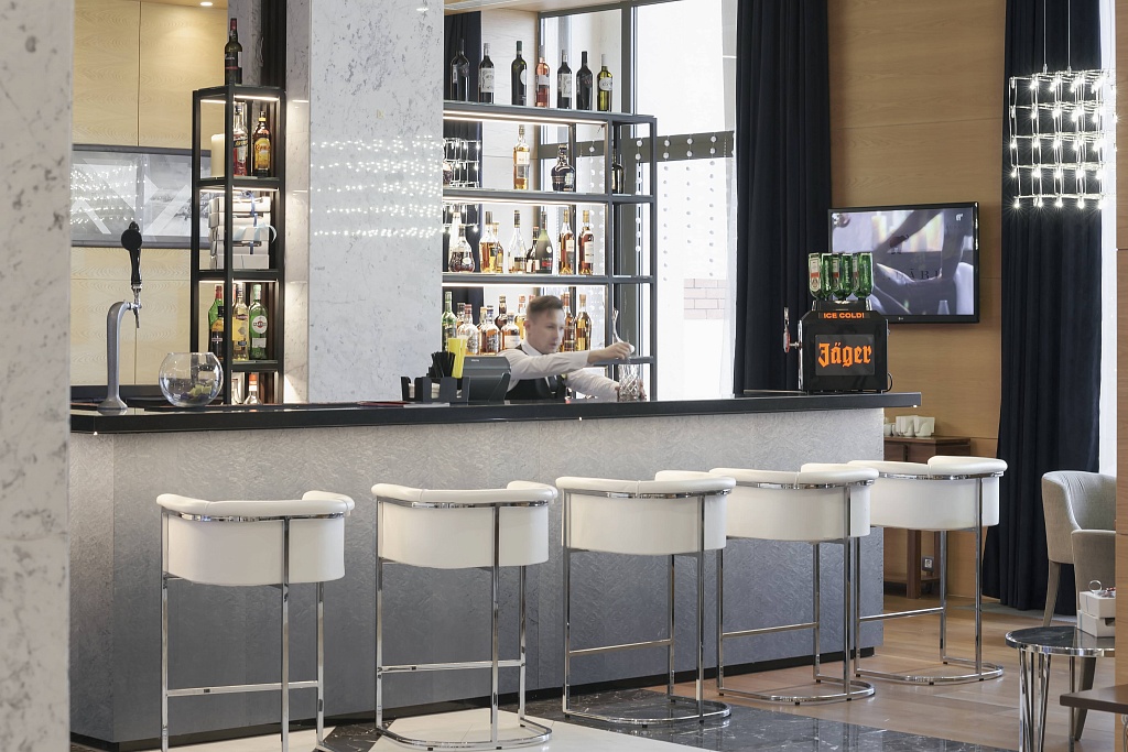 Вас приятно удивит облик зоны ресепшен, лобби и бизнес-пространства. В отеле много света, дизайн решен в светлых тонах, в нем использованы природные материалы. Для проведения деловых и частных мероприятий на верхнем этаже расположены три конференц-зала общей вместительностью до 200 человек, оборудованных по последнему слову техники.
