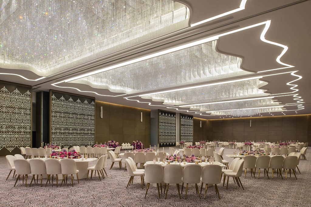 Общее пространство для мероприятий - 2 146 кв. метров. Два ballroom, каждый из которых можно разделить на 3 части, и 6 конференц-залов. Бальный зал Al Mirqab на уровне лобби это пространство для проведения крупномасштабных мероприятий, которые заслуживают исключительной обстановки: с выходом на террасу и собственным VIP-входом, он идеально подходит для незабываемых конференций или гала-концертов.