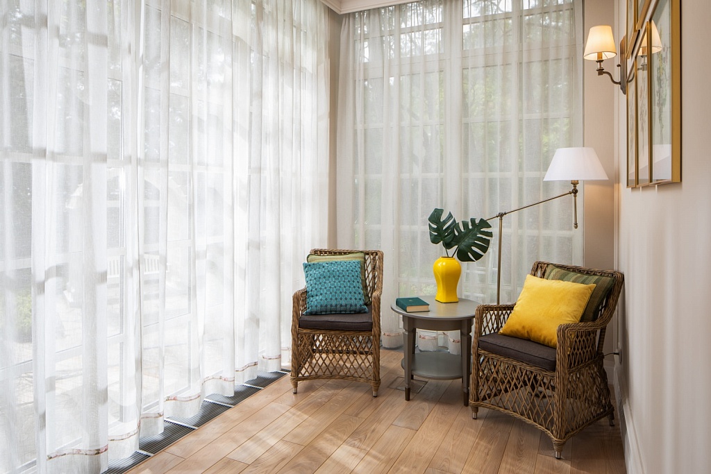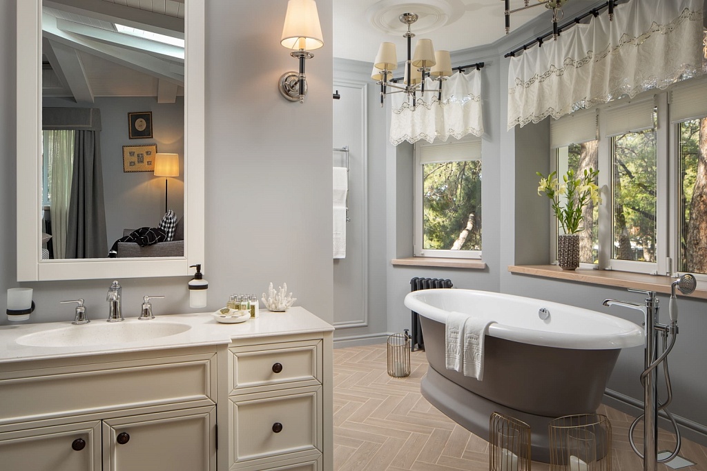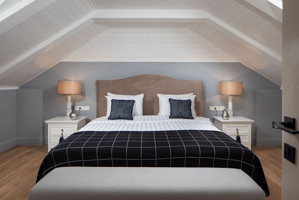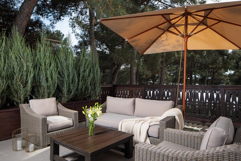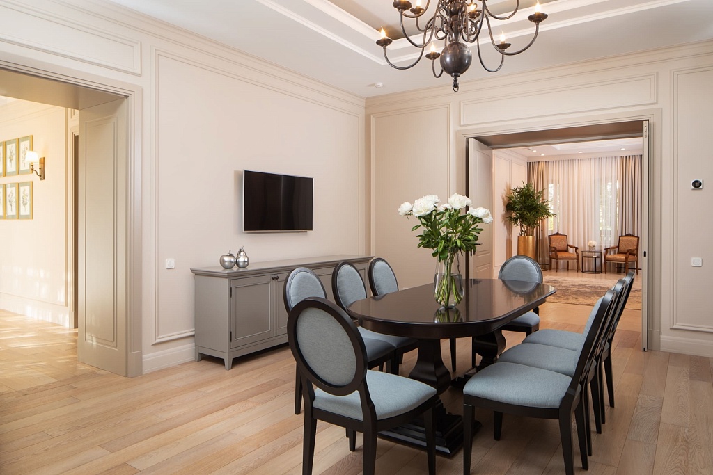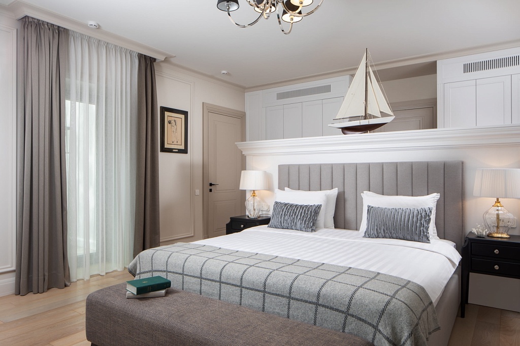 Большой семье или компании до 12 человек стоит обратить внимание на новую виллу с романтичным названием «Звуки музыки». Этот исторический особняк со шпилями и эркерами расположен прямо на берегу моря и представляет собой изысканный памятник архитектуры. В свое время здесь отдыхала творческая богема со всего мира: поэты и писатели, художники и музыканты . Трехэтажная вилла площадью 440 кв. м. сочетает в себе роскошь, классику и минимализм, легкие элементы античности, ампира и арт-деко, воплощенные в монументальности и симметрии. В отделке помещений использованы дорогие материалы и благородные оттенки.