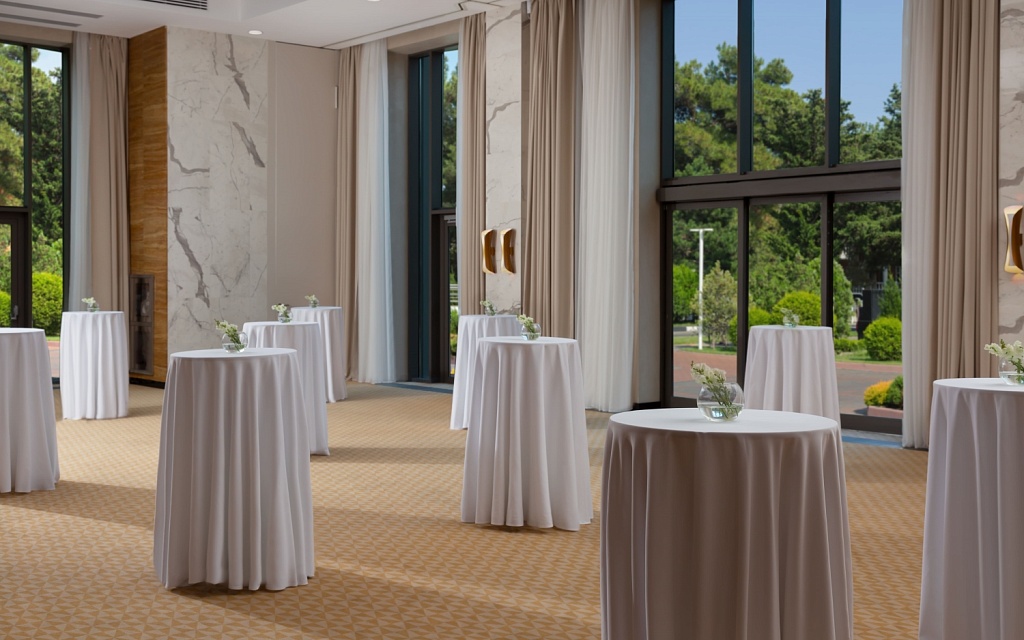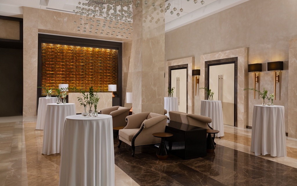 В распоряжении бизнес-клиентов шесть залов вместимостью до 600 гостей, 624 кв. м площадей для мероприятий и конференций, переговорные комнаты, летняя терраса и лобби-бар для отдыха и делового общения, а также возможность организации презентаций автомобилей.