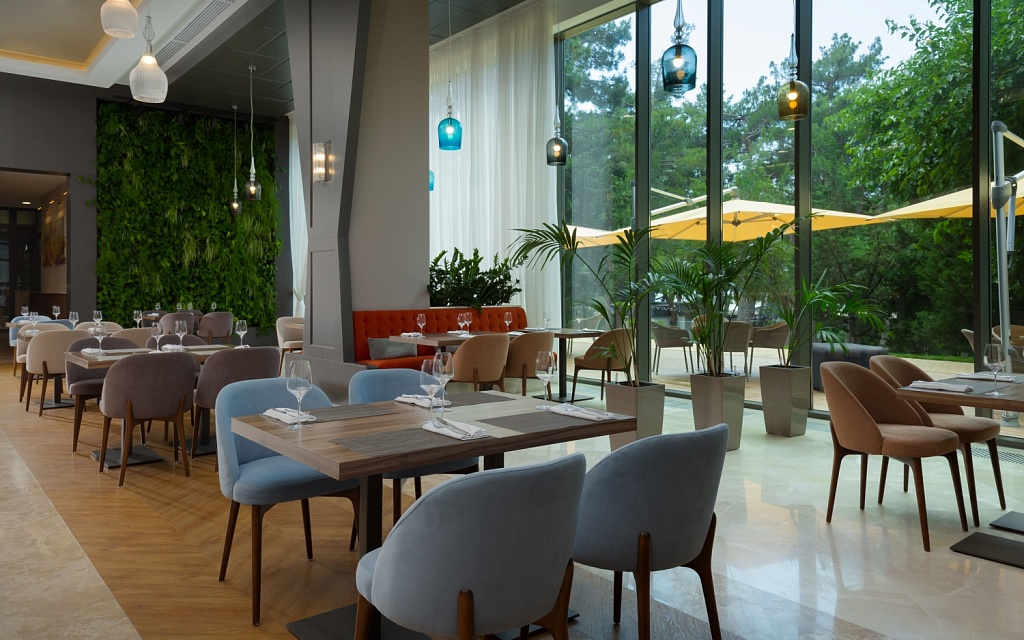 С учетом 11 ресторанов комплекса, бизнес-ланчи и ужины могут быть организованы на площадках с разнообразными панорамными видами на море и горы.
