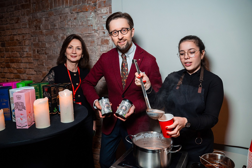 Гости провели прекрасный вечер в духе традиционной вечеринки Après-ski: пряность горячего органического какао с одноименным название "Après-ski" со вкусом лесной альпийской черники от французской компании из Варе QUAI-SUD, ароматы марокканской мяты и сухофруктов в чайный купажах от TWG Tea, ослепительно белый снег на фоне французских Альп фотозоны, зажигательный ретро- DJ-сет в стиле 80х, все это создало непередаваемую теплую атмосферу альпийского шале, спрятавшегося в самом центре заснеженной Москвы.