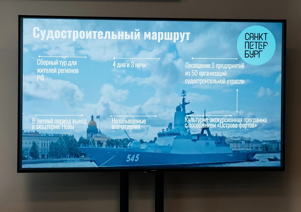 Более того, уже готовится к реализации сборный тур для гостей из других городов на 4 дня и 3 ночи с посещением 5-ти предприятий из 50-ти организаций судостроительной отрасли, культурно-экскурсионная программа с посещением «Острова фортов», а в летний период выход в акваторию Невы.