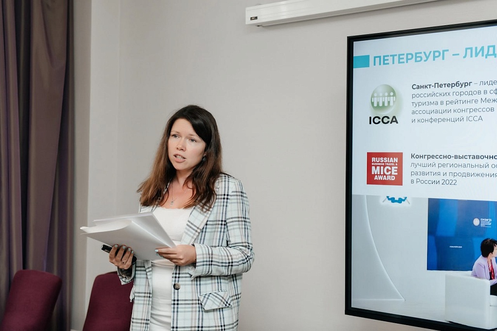 С этой темой на встрече выступила Анна Кочеряева, руководитель партнерской программы Конгрессно-выставочного бюро. Отметим, что КВБ Санкт-Петербурга, основанное в 2014 году, было названо лучшим региональным офисом в сфере развития и продвижения дестинации в России 2022.