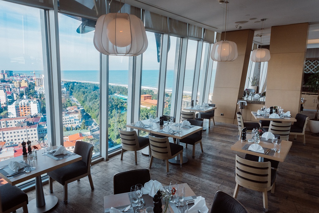 Ближе к ночи в отеле начинается совсем другая жизнь: публика, утомленная спа-процедурами, солнцем и морским бризом, собирается на 19-м этаже в баре Clouds на бокал охлажденного грузинского вина и выступление самобытных и талантливых местных эстрадных звезд.