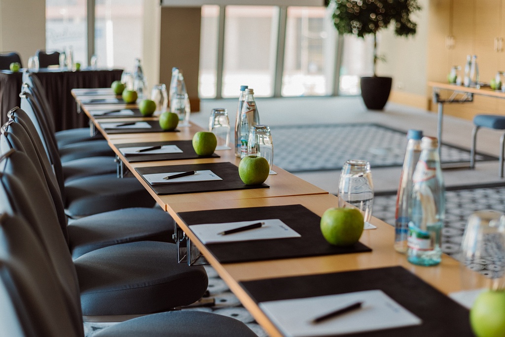 Архитекторы отеля были правы, когда повернули конференц-пространство немного в сторону от набережной, иначе работать было бы сложнее. А так идеально: за панорамными окнами каждого из семи конференц-залов светит солнце и цветет гибискус, а внутри уютно, прохладно, тихо и, главное, функционально.