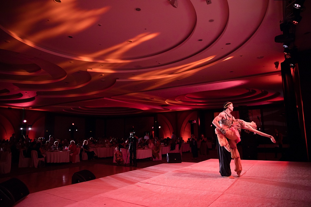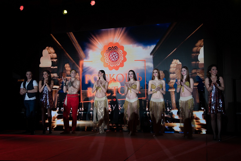 Тема Востока звучала не сама по себе, она стала роскошной оправой для корпоративного мероприятия, поэтому никто не забыл об официальной части и выступлениях гостей. Однако все эти слова очень гармонично перекликались с номерами, предложенными Центром Дягилева. Так, приветственное обращение генерального директора было представлено в сопровождении сцены из балета «Шахерезада», которую исполнили артисты Мариинского театра. Далее в программе была ария Надира из «Ловцов жемчуга» в оригинальной интерпретации жемчужины Санкт-Петербургской оперы, вокальный номер с говорящим названием Diva и интерактив от Ведущего под названием «Восток: мифы и реальность».