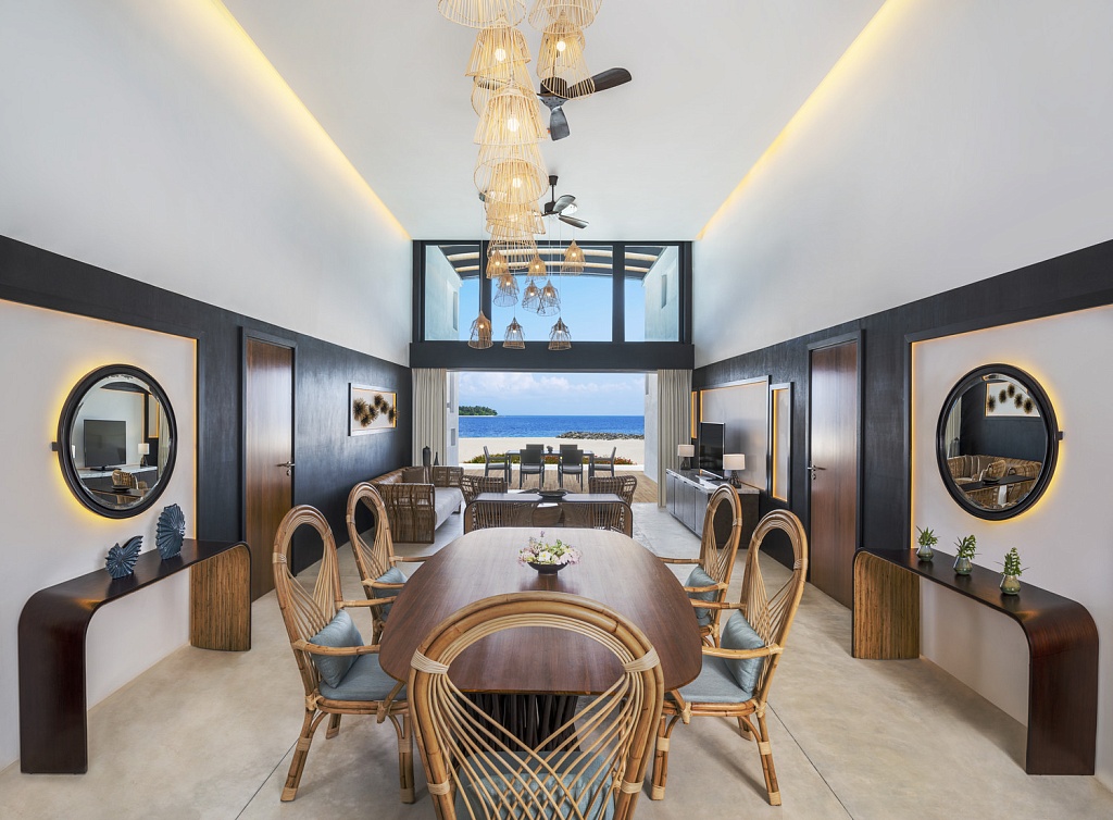 Современные виллы представляют собой роскошные и наполненные светом пространства, которые тщательно спроектированы с использованием итальянского дизайнерского опыта и инноваций. Изысканный современный декор, сочетая органические формы и ценные местные материалы, гармонично вписывается в лазурные воды Индийского океана. Из каждого номера есть выход на элегантную террасу и собственный бассейн.