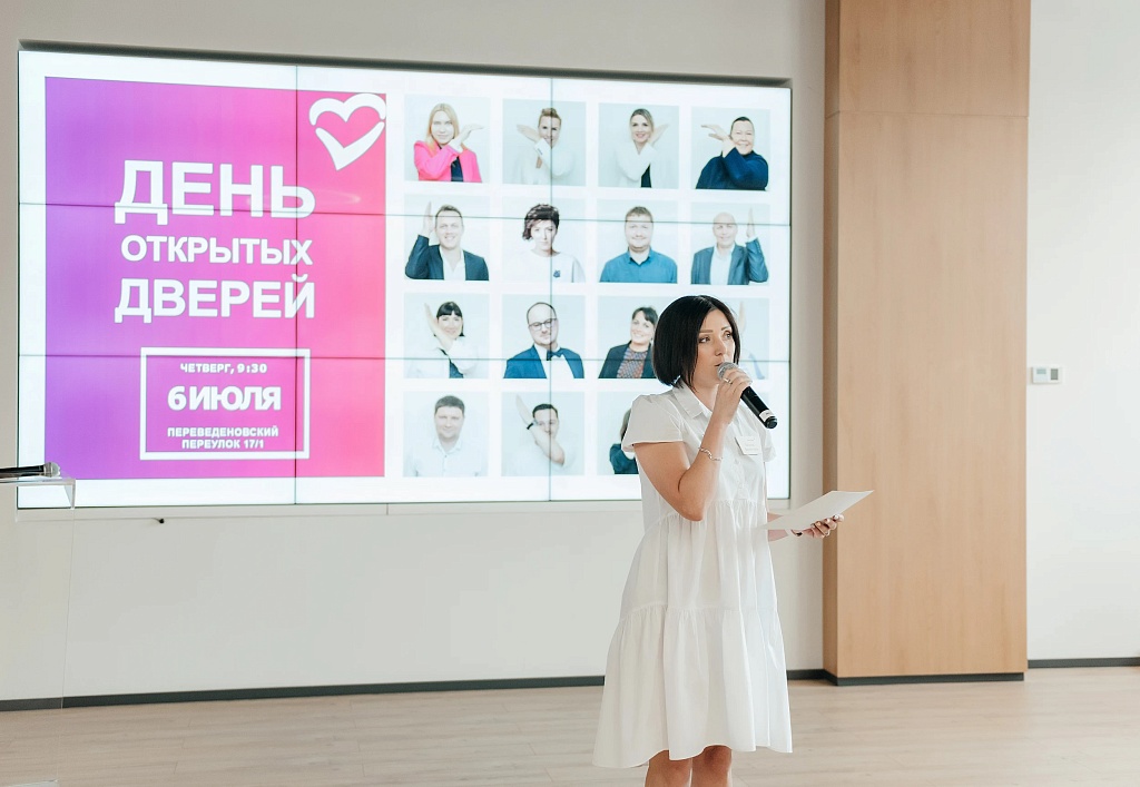 Программа была очень насыщенная, гости начали собираться с самого утра и не расходились до обеда, настолько было уютно, душевно и информативно. Офис встретил летними красками, праздничной фотозоной с шарами и яркими слайдами на большом светодиодном экране. Прежде чем разместиться в амфитеатре на подушках, все гости насладились утренним кофе, вкуснейшим завтраком, приготовленным отелями сети Radisson Hotel Group, и весело поговорили обо всем на свете.