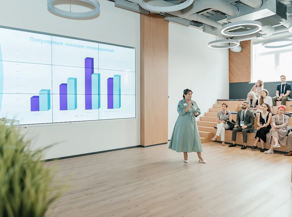 Что еще? Заказчики интересуются полезным контентом. Делают фокус на нестандартных решениях, wow-эффектах и экотематике. ESG (тренд устойчивого развития) проявляется в меню кейтеринга, в бережливом отношении к расходным материалам и даже в корпоративных подарках. Летом в фаворе спортивные программы и тимбилдинги, а также открытые площадки типа кемпингов и стадионов.