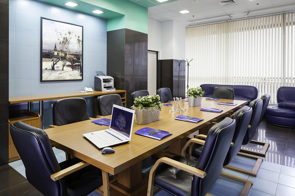 Весьма популярны переговорные комнаты отеля (площадь 30 кв. м, вместимость до 15 человек). Помимо самостоятельного их использования есть еще одна дополнительная возможность – расположение переговорных комнат позволяет создавать единое бизнес-пространство с залами при проведении масштабных презентаций и переговоров. Комнаты для переговоров выполнены в деловом стиле и оснащены современной мебелью и плазменными экранами.