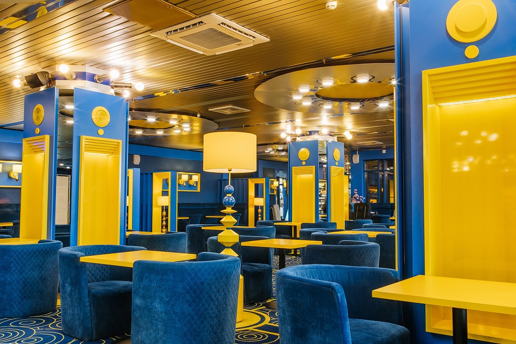 Залы «Лира» (101 кв. м, до 90 гостей) и «Созвездие» (78 кв. м, до 70 гостей) расположены на 1-м этаже и образуют единую концепцию дизайна с лобби отеля, выдержанного в интенсивных синих и желтых тонах как ассоциация с глубокой синевой космоса и ярким светом звезд. И действительно: в обоих залах создается камерная уютная атмосфера для просмотра презентаций при погашенном свете благодаря black-out гардинам, и залы ярко освещаются дневным светом из панорамных окон и дополнительной подсветкой во время шумных мероприятий – круглых столов, семинаров, тренингов, банкетов. «Лиру» также выбирают для проведения свадеб. Названия этих залов также перекликаются с названием отеля: в созвездии Лира самой яркой звездой светит Вега.
