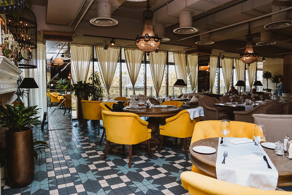 Просторный зал с небольшой сценой объединяет несколько зон ресторана, расположенных на разных уровнях, общей площадью 400 кв.м. Здесь можно комфортно отпраздновать семейное торжество или провести масштабное корпоративное мероприятие, отметить вдвоем знаковое событие в жизни или организовать роскошный свадебный банкет (возможности ресторана позволяют провести свадьбу до 120 приглашенных). По вечерам, со вторника по воскресенье, здесь выступает джаз-бенд с программой легкой музыки, задающей настроение.