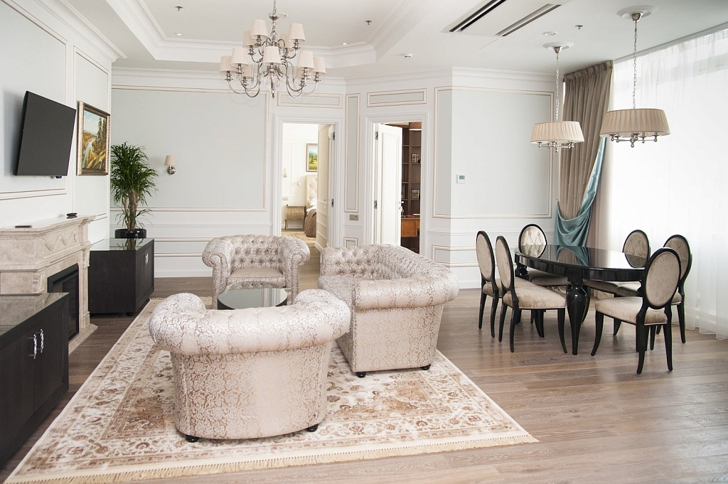 Апартаменты столь высокого уровня – это отличная возможность чувствовать себя как дома в длительных деловых поездках, проводить незабываемые мальчишники и девичники, свадебные уикенды, а также принимать гостей и пользоваться всеми преимуществами представительского класса. Редакция MICE&more в Президентском Люксе однажды отметила свой новогодний корпоратив: признаемся, это был наш самый эффектный праздник.