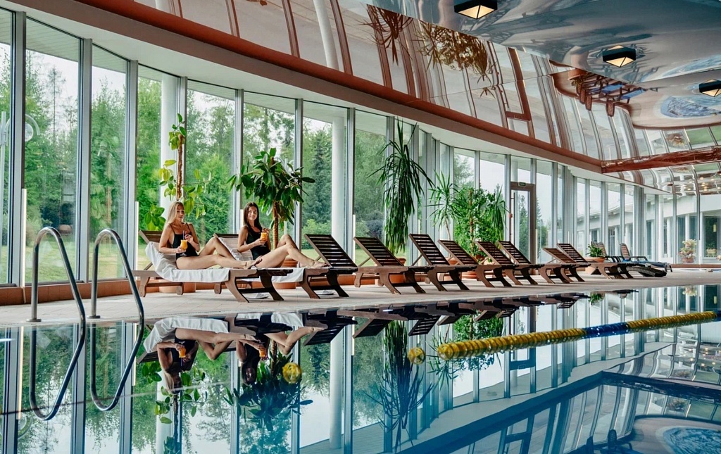 Спа-комплекс с панорамным бассейном предлагает гостям различные процедуры для восстановления сил и душевного равновесия: широкий спектр техник массажа, аюрведа, косметологические процедуры, банный комплекс и пр.