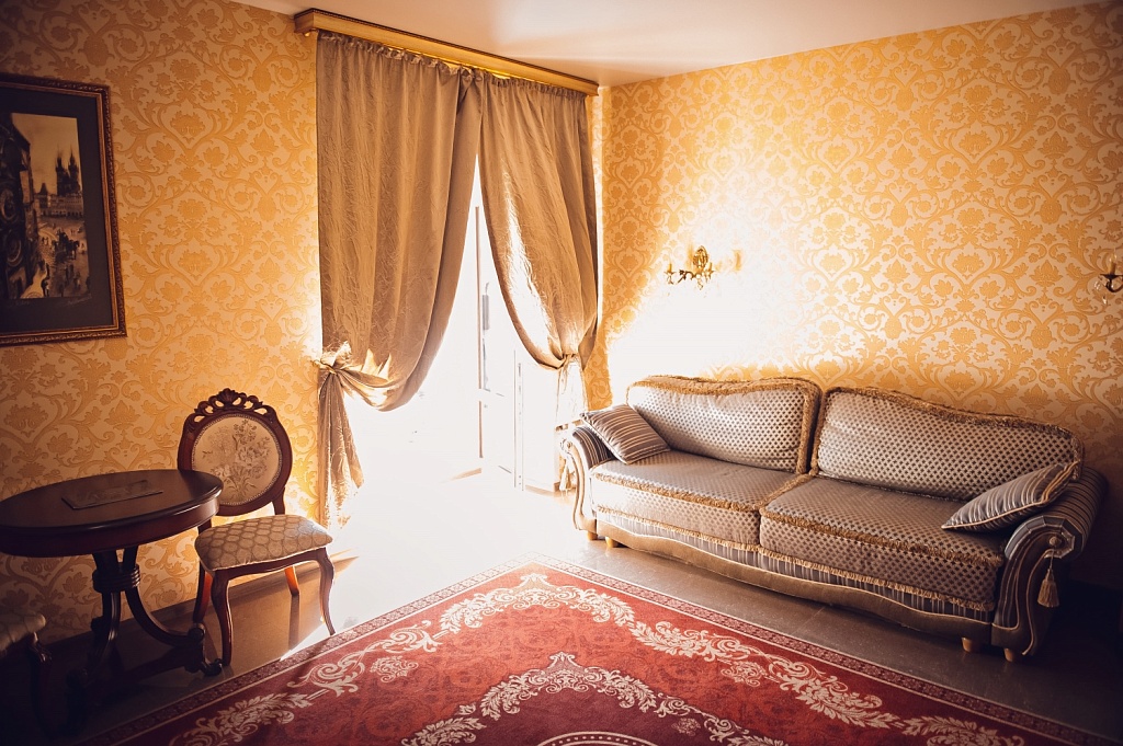 Вообще, слово «роскошный» здесь хотелось повторять часто. Во-первых, нас восхитили номера, точнее, их размеры. Если европейский турист доберется до здешних мест, он будет крепко поражен высотой потолков и шириной подоконников, а также роскошной (вот – опять это слово!) двухместной ванной-джакузи. Отель достаточно новый (ему чуть более пяти лет), но дизайн номеров решен в стиле XIX-го века, поэтому есть иллюзия погружения в историческое прошлое костромской жизни.