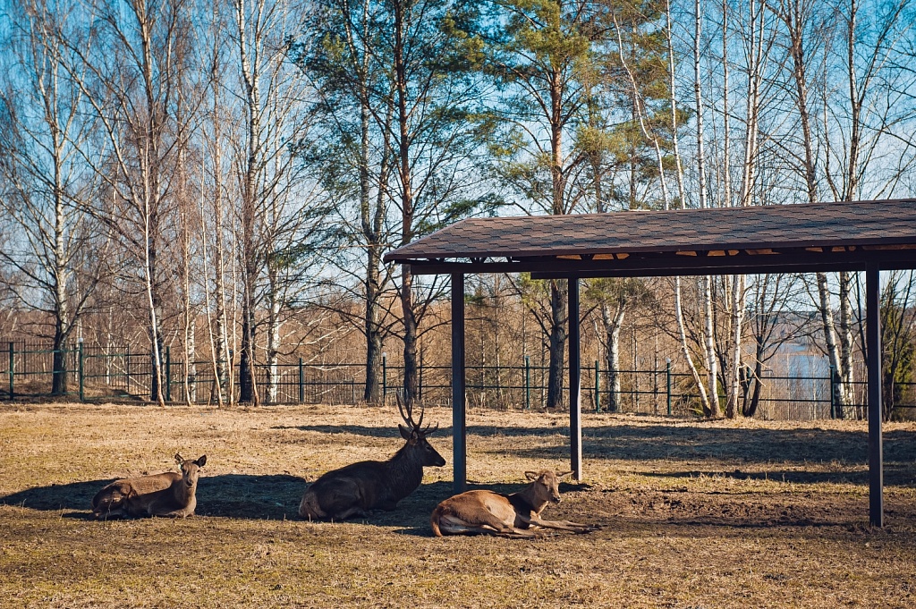 Территория у отеля достаточно большая, причем гуляя по ней, вы можете душевно «пообщаться» с маралами.