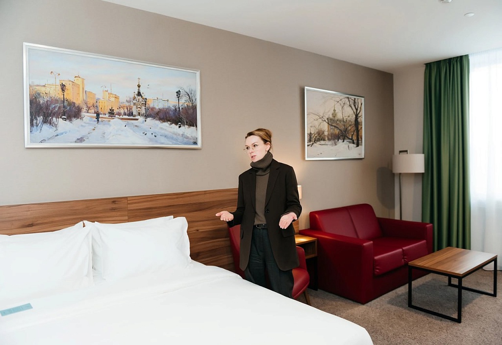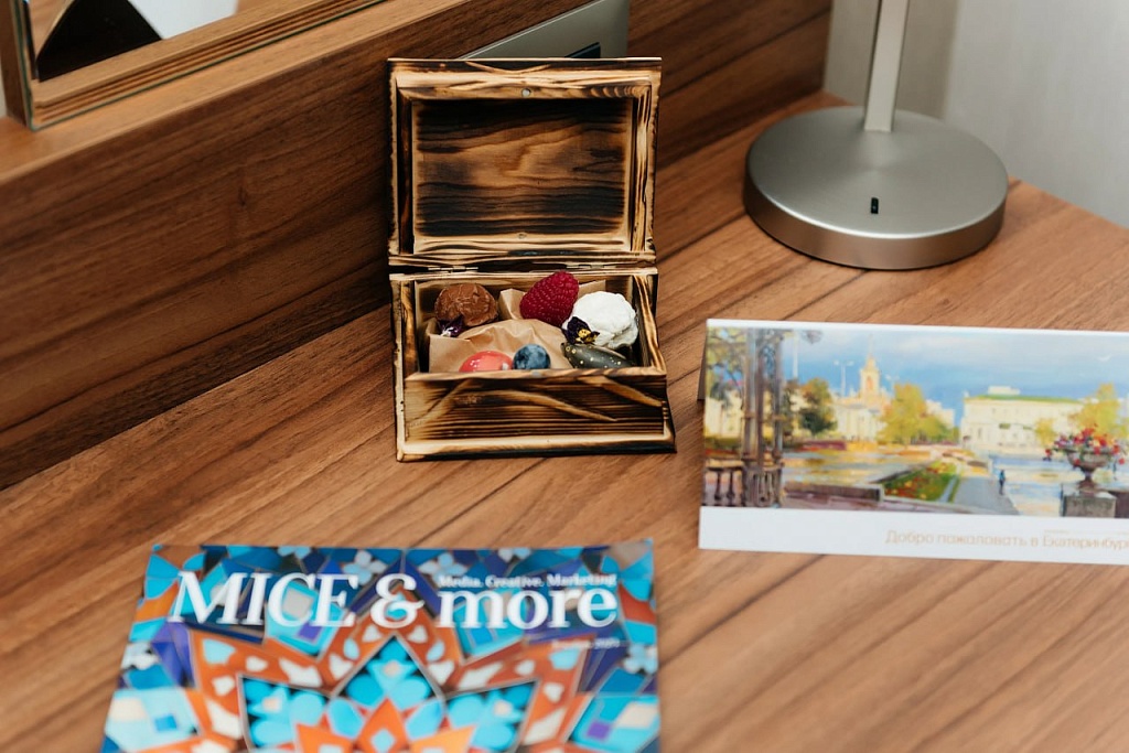 В отеле все новенькое, с иголочки, он открылся в конце сентября 2023-го года. Мы уже дважды рассказывали о нем в журнале – в осеннем и зимнем номерах, даже сделали отдельную digital-неделю в соцсетях, поэтому подробную информацию можете посмотреть по ссылке Место встречи – «Екатеринбург»! | Журнал нового поколения MICE&more (miceandmore.org) Однако, воистину, надо один раз увидеть и прочувствовать, чем 100 раз прочитать. Пространство эргономичное, номера просторные и комфортные, особенно впечатляют массажные кресла Yamaguchi в люксовых категориях. В номерах много конфигураций – от Стандарта до Гранд Люкса, double легко превращается в twin, есть коннекты, номера для людей с ограниченными возможностями. Все это удобно для расселения групп. Отель вообще очень гибко подстраивается под запросы заказчика.